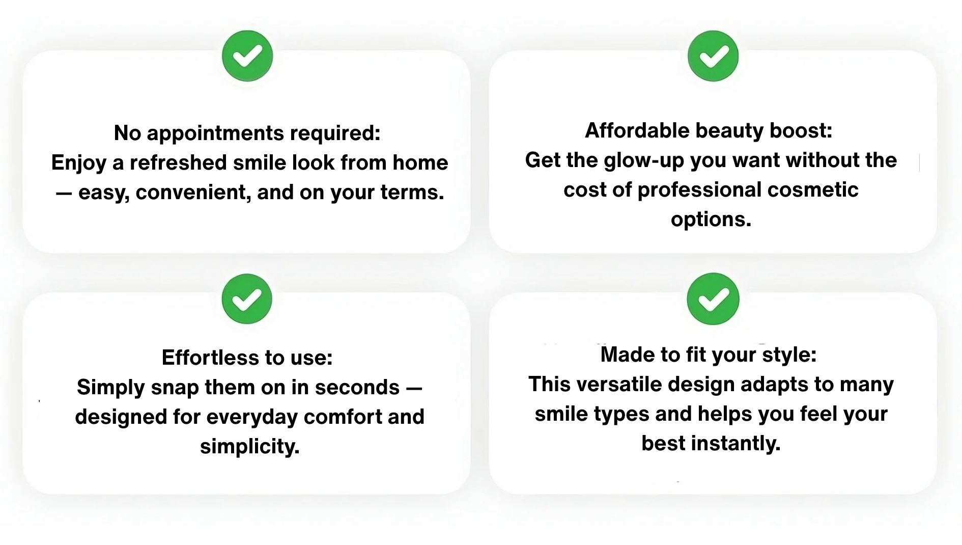 3️⃣ Fit the veneers – Gently press the veneers onto your front teeth, allowing the soft insert to mold to your shape.